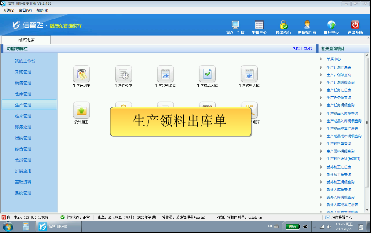 介紹信管飛RMS生產(chǎn)領(lǐng)料出庫單的主要功能和操作步驟。