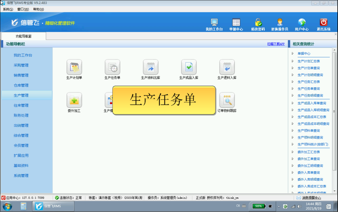 介紹信管飛RMS生產(chǎn)任務(wù)單的主要功能和操作步驟。