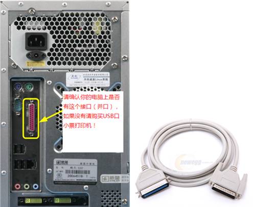采用并口的打印機,要求電腦主機上必須有25針的并口,如下圖所示: