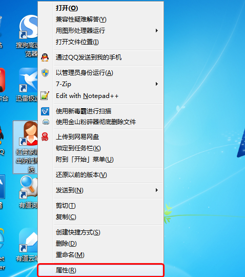 1、在桌面上的“紅管家財(cái)務(wù)出納記賬系統(tǒng)”快捷方式上右鍵,點(diǎn)“屬性”: