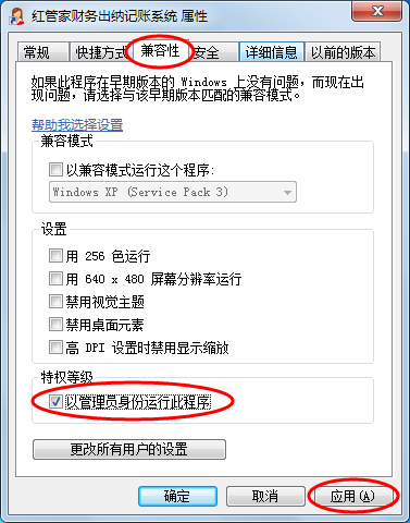 2、然后打開“兼容性”頁(yè),復(fù)選“以管理員方式運(yùn)行”,然后點(diǎn)“應(yīng)用”按鈕。