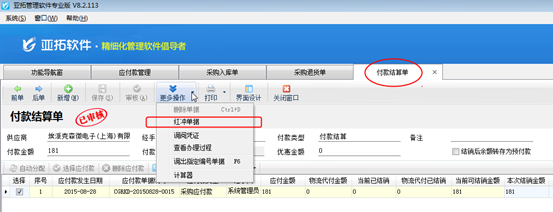 這個時候,你可以找到該條單據對應的付款結算單或收款結算單,然后進行紅沖單據,如圖2所示。