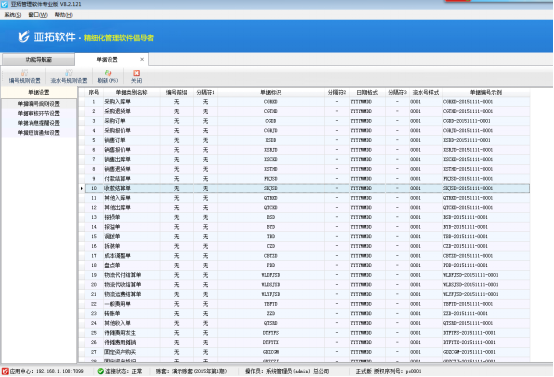 亞拓管理軟件、亞拓倉庫管理軟件、紅管家送貨單軟件都支持對單據編號規則進行設置,下面我們以亞拓管理軟件為例來介紹一下具體的操作步驟。