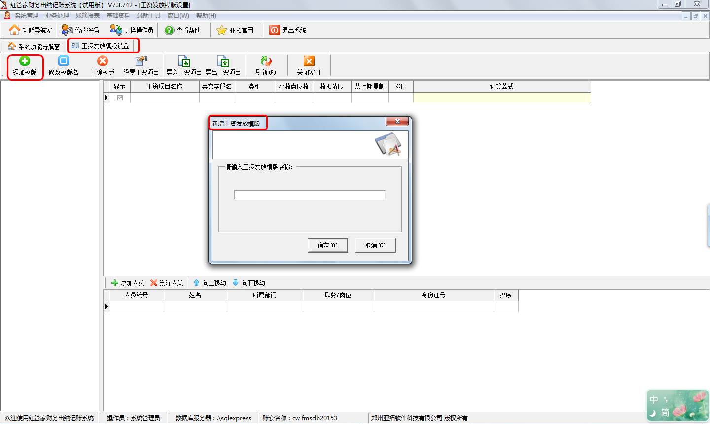 工資發放模板設置好之后,可以添加相應人員來按照此工資發放模板來計算工資,如下圖三所示。