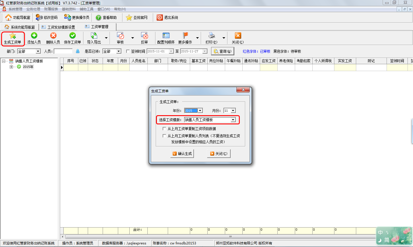 亞拓軟件開發的紅管家財務出納記賬軟件含有工資管理的功能(工資管理軟件),可以對公司內部員工的工資進行管理,可是多數用戶都不清楚如何在出納記賬軟件內對員工工資進行管理,下面我們就詳細介紹下紅管家財務出納記賬軟件中如何實現對公司內部員工工資進行管理。