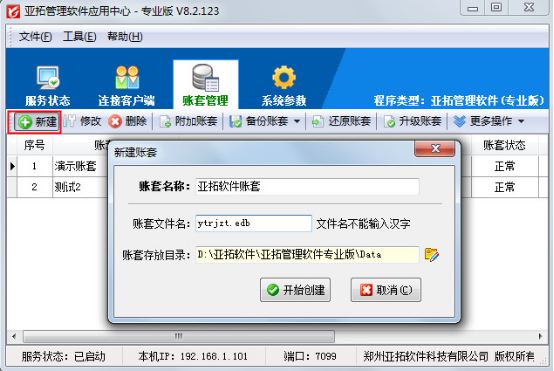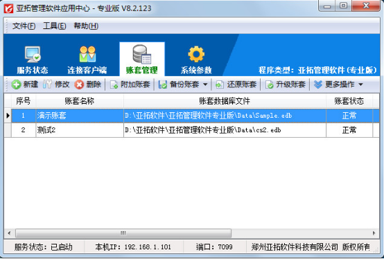 打開亞拓管理軟件應(yīng)用中心(桌面右下角紅色的圖標(biāo))—》“賬套管理”即可進(jìn)入賬套管理界面,如下圖1所示: