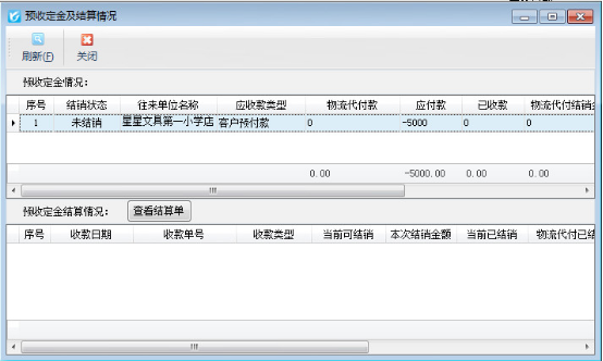 在銷售訂單界面上點“更多操作”—》“查看定金及結銷情況”,可以查看相應的定金及結銷的情況,如下圖2所示。