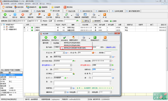 紅管家財務出納記賬軟件中可以記錄現金日記賬及銀行日記賬,并支持對銀行轉賬的情況記錄憑證,同城跨行轉賬、省內異地同行轉賬、跨省異地同行轉賬、跨行異地轉賬等情況都有手續費的情況,那么在含有手續費的情況下該如何在財務出納記賬軟件中記錄憑證呢?