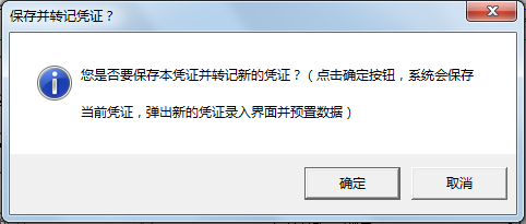 憑證信息錄入完之后點擊“保存憑證并轉記其他銀行賬(銀行轉賬)”后系統會彈出如下提示框,提示“您是否要保存本憑證并轉記新的憑證?(點擊確定按鈕,系統會保存當前憑證,彈出新的憑證錄入界面并預置數據)”點擊“確定”按鈕就可以的。