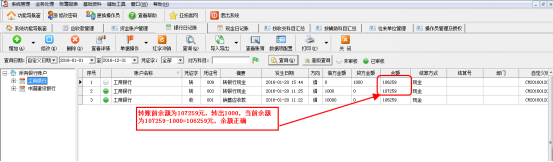 憑證保存成功后我們打開“工商銀行”查看工商銀行當前余額為106259元(轉賬前余額為107259元,轉出金額1000元,轉賬后金額應為106259元),當前余額正確。如下圖五所示。