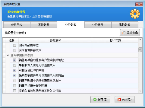 在功能導航窗點“系統管理”—》“業務參數設置”即可進入“業務參數設置”界面,如下圖1所示: