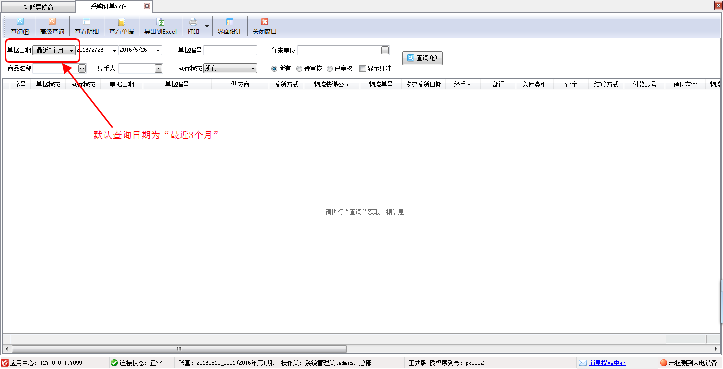亞拓管理軟件(精細化管理軟件、進銷存管理軟件、記賬軟件)及紅管家倉庫管理軟件內都包含了統計查詢功能(采購單匯總表、銷售單匯總表、銷售單明細查詢、銷售毛利匯總等統計查詢報表),軟件內統計查詢功能默認的查詢日期為“最近3個月”(如下圖一所示),但是如果需要修改默認查詢日期,該如何修改呢?下面我們以亞拓管理軟件專業版為例詳細介紹下軟件內如何修改默認查詢日期。