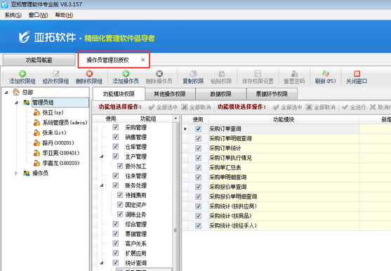 亞拓管理軟件、亞拓倉庫管理軟件、紅管家送貨單軟件、紅管家財務(wù)出納記賬系統(tǒng)、紅管家票據(jù)打印軟件等都可以實現(xiàn)多個操作員登錄使用軟件的功能,如果使用過程中把操作員密碼忘了應(yīng)該怎么辦?下邊我們就具體以亞拓管理軟件專業(yè)版為例進行詳細介紹如何重置操作員密碼。