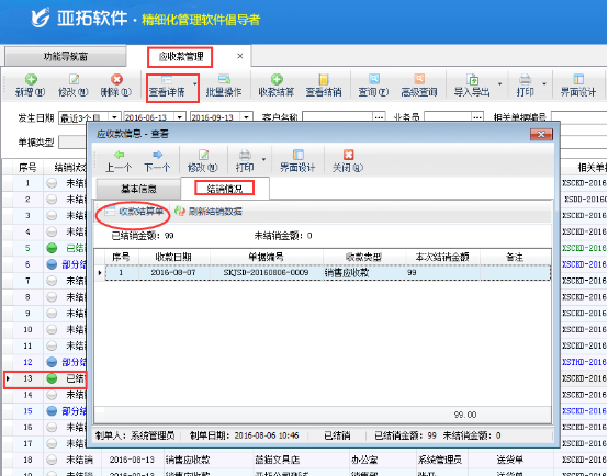 亞拓軟件公司旗下的紅管家送貨單軟件、出納記賬軟件、亞拓管理軟件都支持應收款管理,可以對已收貨款進行核銷。更方便管理貨款,使往來賬更加一目了然。
