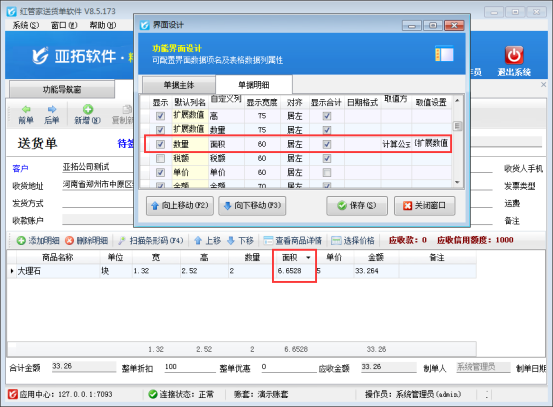 對于不同的商品都能夠使用軟件開單計算,亞拓軟件下的送貨單軟件和亞拓管理軟件等都支持可在開單界面設置擴展數值來支持計算公式的使用,比如有些商品需要寬乘高來計算面積。為了使客戶對于計算公式的計算結果更便捷使用,軟件可設置修改由配置計算公式得的計算結果。