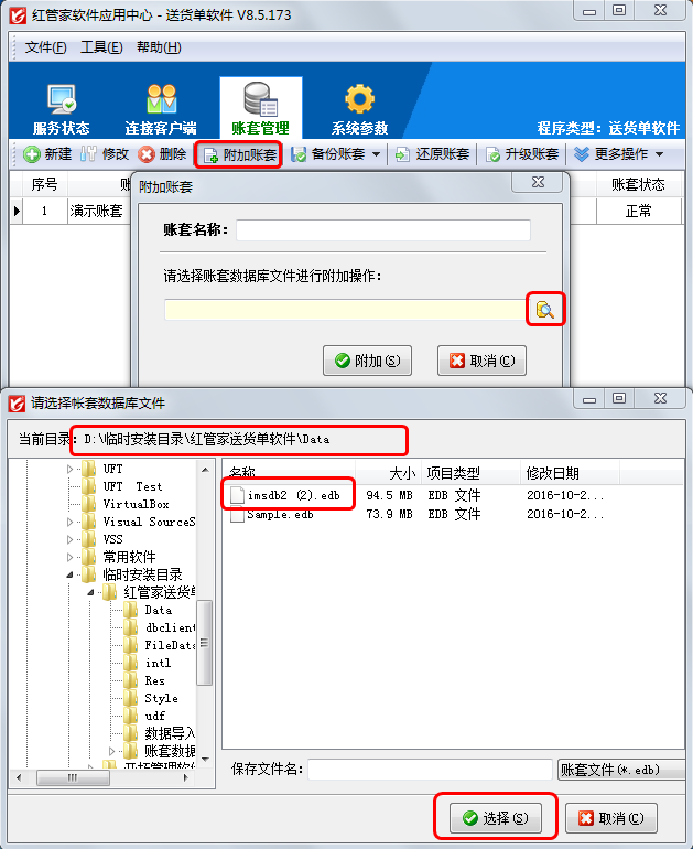 圖二 導入紅管家送貨單軟件(單機版)賬套數據文件