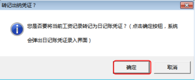 工資單已轉記過憑證后無法再次被轉記憑證。如果這個工資單記錄已經轉記過憑證,再次進行轉記現金或者銀行憑證時,系統會提示“當前單據已轉記過出納憑證,是否打開查看?”,如圖4所示。