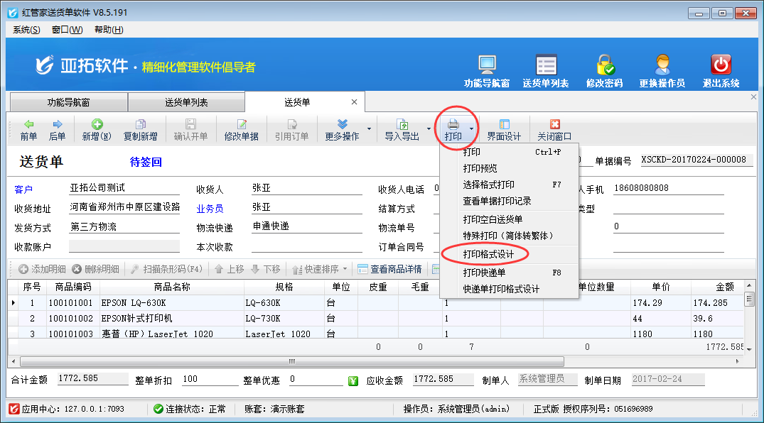 歡迎免費下載試用這款可以自定義打印格式樣式的送貨單打印軟件:紅管家送貨單軟件