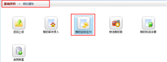 以亞拓管理軟件專業版本為例,示范如何修改賬套啟用后的客戶期初應收應付款,選擇“功能導航窗”的“基礎資料”選項,進入基礎資料窗口,選擇“期初建賬”,進入“期初應收應付”界面,流程如下圖所示: