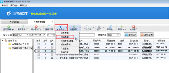 其他票據管理可以對其他票據進行從登記—》領用—》填開—》核銷的流程化管理,只有已領用的票據才可以核銷。軟件支持批量核銷票據,為客戶核銷票據節省時間,提高工作效率。本文以紅管家票據打印軟件為例介紹一下如何批量核銷其他票據。