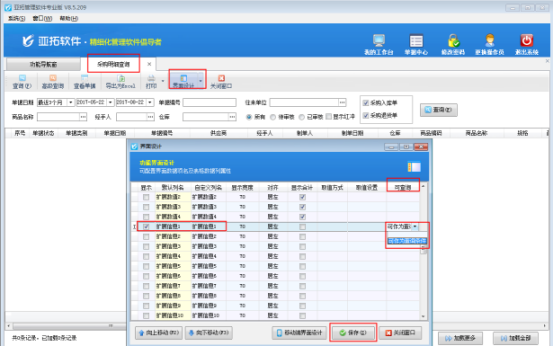 亞拓管理軟件的銷售單(采購單)匯總表、銷售訂單(采購訂單)匯總表、銷售單(采購單)明細表、銷售訂單(采購訂單)明細表都支持在界面設計中配置“擴展信息”作為查詢條件。