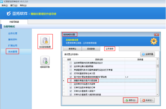 亞拓管理軟件和紅管家送貨單軟件都可以開銷售單(送貨單),銷售開單界面默認都顯示客戶欠款信息,方便了解客戶欠款情況。如果不需要在銷售開單界面顯示客戶欠款信息,可以到系統管理里面設置。本篇文章我們以紅管家送貨單軟件為例來介紹一下在銷售開單界面如何顯示客戶欠款信息。