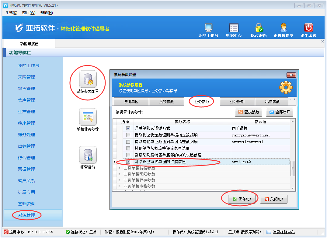 亞拓管理軟件(進銷存管理軟件)以及紅管家送貨單軟件最新版本中增加了可直接修改已審核單據的擴展信息的功能,有操作權限的操作員可以直接對已審核單據的擴展信息進行修改,本篇文章我們以亞拓管理軟件專業版為例來詳細介紹一下如何啟用可修改已審核單據的擴展信息功能?