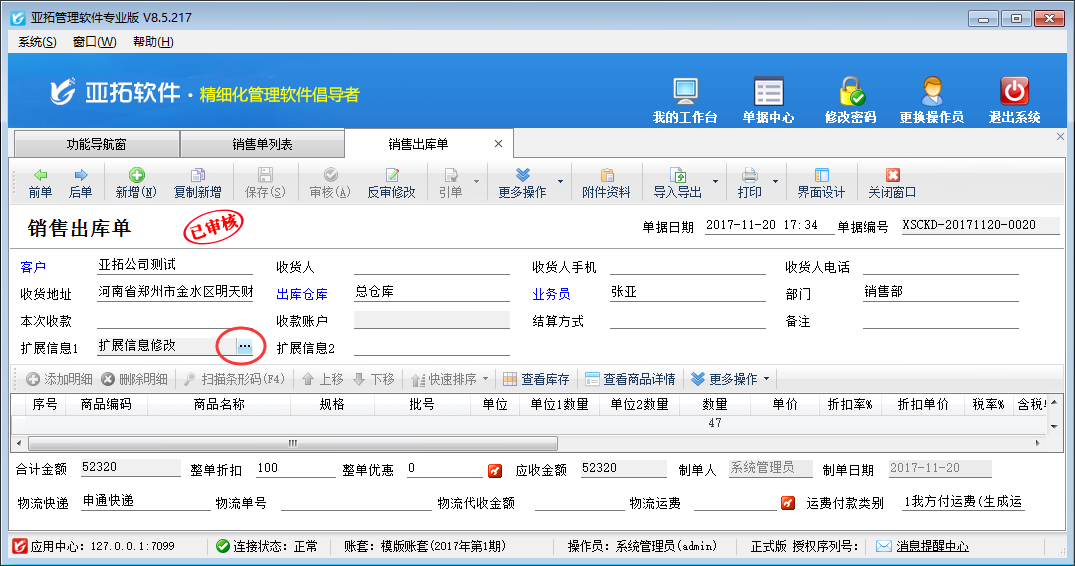 歡迎免費下載試用這款可直接修改已審核單據擴展信息的進銷存管理軟件:亞拓管理軟件。