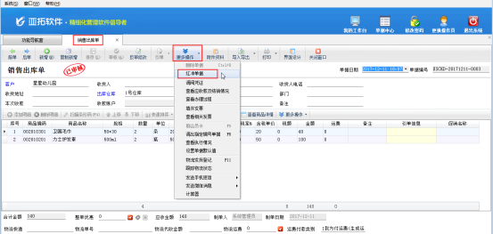 2、可以在銷(xiāo)售出庫(kù)單界面直接紅沖作廢單據(jù)
