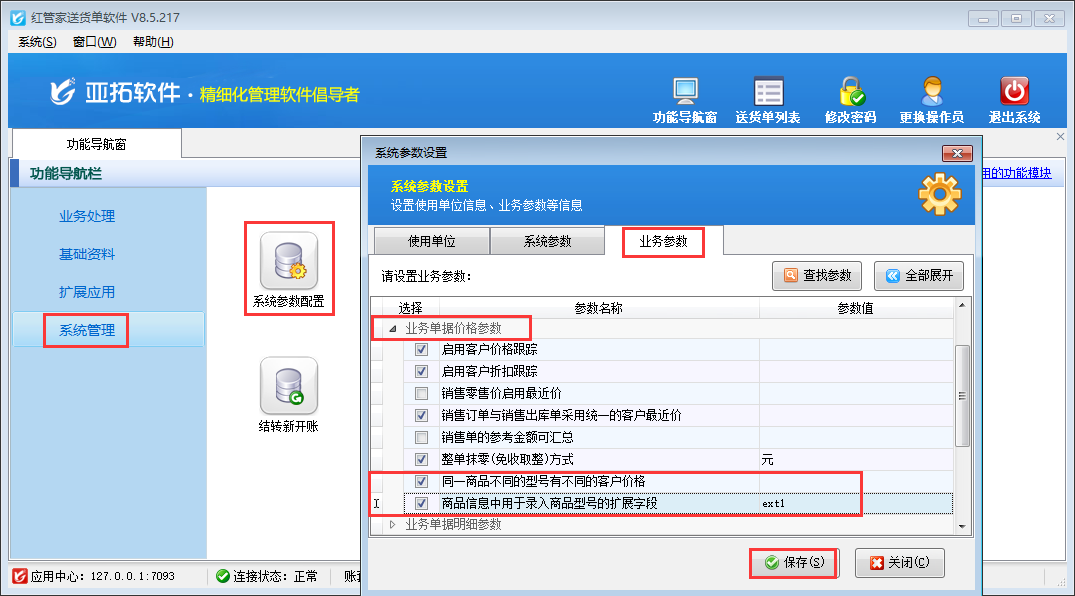 亞拓管理軟件、紅管家送貨單軟件及紅管家倉庫管理軟件中可以設置同一商品不同的型號可以有不同的客戶價格,方便用戶管理同一個商品多型號的情況下不同客戶的最近銷售價格,本篇文章以紅管家送貨單軟件為例來詳細介紹一下如何啟用同一商品不同的型號有不同的客戶價格功能?