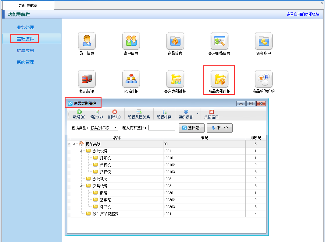 1、可以在基礎資料里面維護商品類別