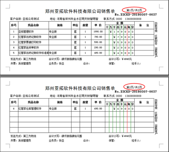 信管飛送貨單軟件、信管飛倉庫管理軟件及亞拓管理軟件等都支持開單打印單據,軟件內置了十幾種打印格式模版,同時支持自定義打印格式模版,本篇文章我們以亞拓管理軟件為例詳細介紹一下如何在打印模版中添加頁碼?