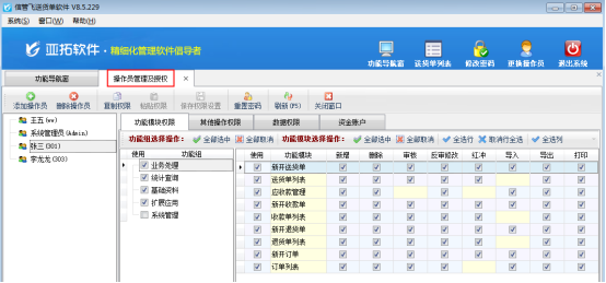 系統(tǒng)管理員登錄軟件后,在功能導(dǎo)航窗點(diǎn)“系統(tǒng)管理”——》“操作員及授權(quán)”即可進(jìn)入“操作員管理及授權(quán)”界面,如圖2所示。