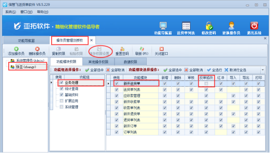亞拓管理軟件(星光版、標(biāo)準(zhǔn)版、專業(yè)版)、信管飛送貨單軟件、信管飛倉庫管理軟件都支持新增操作員進行設(shè)置操作員權(quán)限。對于業(yè)務(wù)單據(jù),部分用戶設(shè)置操作員及權(quán)限時不允許操作員有修改單據(jù)的權(quán)限。