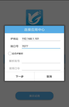 手機APP連接和主機電腦同一個網絡,輸入主機電腦應用中心程序的IP地址和啟用APP服務處的端口號,進行連接應用中心上的賬套進行登錄。手機APP安裝完成后,登錄界面點擊選擇賬套,輸入主機IP地址和端口號如下圖2、3所示: