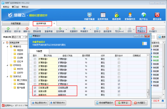 以“信管飛送貨單軟件”為例,示范下如何在送貨單列表界面顯示結算狀態。