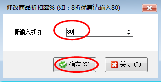 在單據明細上方,點擊“更多操作”—》“修改商品折扣”,彈出修改商品折扣率的窗口,輸入折扣(例如:8折優惠就輸入80),然后點擊“確定”進行保存,如圖2、圖3所示: