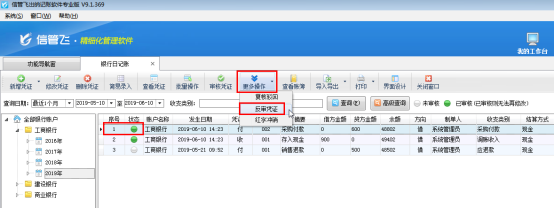 在銀行日記賬列表界面,如圖2所示,點擊“更多操作”——》“反審憑證”,系統彈出提示信息“您確定要反審當前憑證?”,點擊“確定”按鈕,如圖3所示。