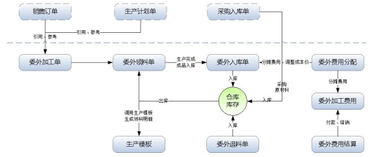 (5)委外業務還可以管理各種委外費用、費用付款結銷、費用攤銷,分別開“委外加工費用單”、“委外費用結算單”、“委外費用分配單”進行處理。
