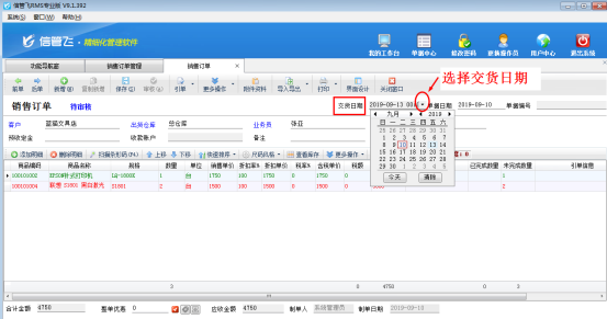 在功能導(dǎo)航窗點(diǎn)擊“銷售管理”—》“銷售訂單”,新增銷售訂單,訂單界面可以錄入交貨日期,如下圖所示: