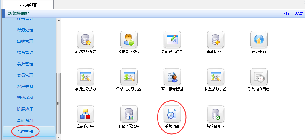在功能導航窗點擊“系統管理”—》“系統參數設置”—》“業務參數”,即可進入到“業務參數”配置界面,在系統預警參數內將“啟用庫存上下限預警”參數啟用一下,設置完成后點擊“保存”按鈕保存配置,如下圖所示。