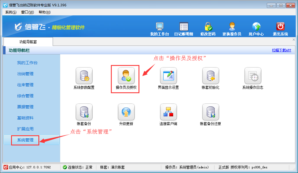 歡迎免費(fèi)下載試用這款可設(shè)置多個(gè)操作員賬號(hào)登錄的出納記賬軟件:信管飛出納記賬軟件。