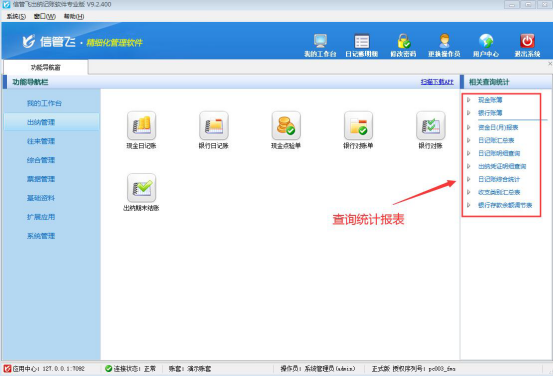 信管飛出納記賬軟件內包含豐富的記賬統計表格,如現金賬簿、銀行賬簿、資金日(月)報表、收支類別匯總表等。如果不希望員工賬號登錄后導出這些報表,如何設置呢?本篇文章以信管飛出納記賬軟件專業版為例演示一下出納記賬軟件內如何設置操作員不可導出現金及銀行賬簿。