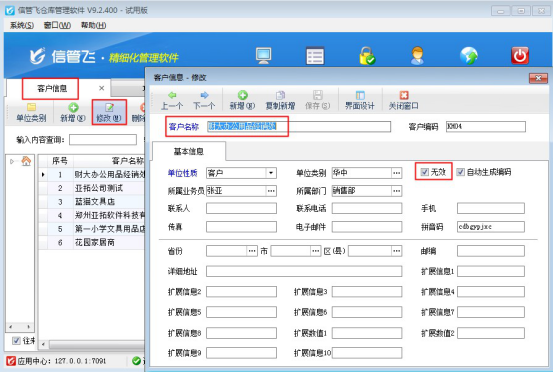 歡迎下載試用可設置不使用客戶為無效的軟件:信管飛倉庫管理軟件