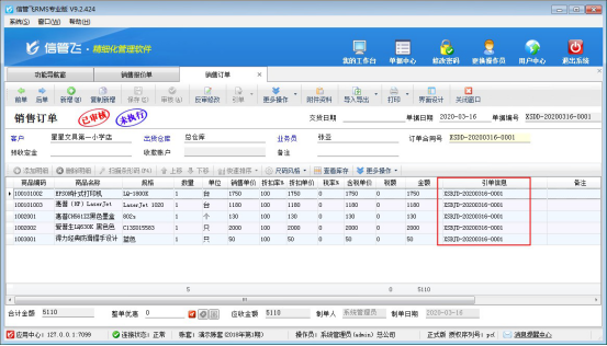 參數設置完成,返回至銷售訂單開單界面,點擊引單--引用銷售報價單,可看到之前已引用過的銷售報價單信息,可重復引用,如下圖所示: