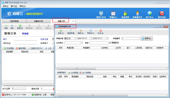 以“信管飛RMS專業版”為例,直接開銷售報價單并被銷售訂單引用,再次開銷售訂單引用銷售報價單會獲取不到銷售報價單信息,如下圖所示:
