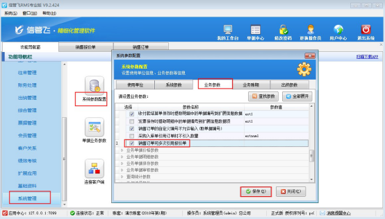 需要重復引用需設置下參數“銷售訂單可多次引用報價單”,在功能導航窗點擊“系統管理”—》“系統參數配置”,在業務參數中把參數“銷售訂單可多次引用報價單”勾選保存配置,如下圖所示: