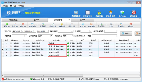 歡迎下載試用可登記應(yīng)退款以及可抵消應(yīng)收款的送貨軟件:信管飛送貨單軟件