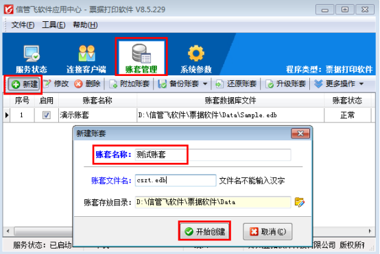 賬套即賬套數據庫,這是一個會計業務引申出來的概念,賬套數據庫中存儲業務數據。使用軟件之前建議新增加一個賬套,用于重新錄入和管理數據,信管飛RMS、信管飛倉庫管理軟件、信管飛送貨單軟件、信管飛出納記賬軟件、信管飛票據打印軟件等軟件的賬套都是在主機電腦的應用中心程序上集中管理的,下面我們以信管飛票據打印軟件為例詳細介紹下在使用軟件之前如何新增加一個賬套?