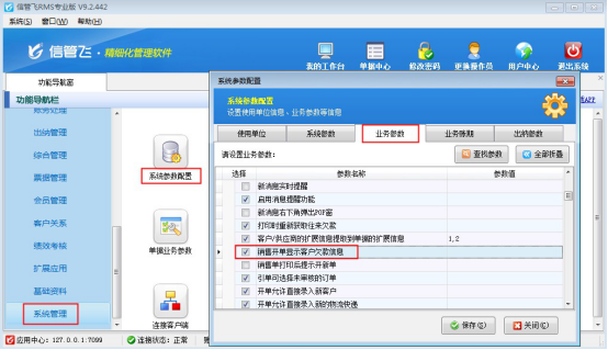 信管飛RMS軟件和信管飛送貨單軟件都可以開銷售單(送貨單),銷售開單界面默認都顯示客戶欠款信息,方便了解客戶欠款情況。如果不需要在銷售開單界面顯示客戶欠款信息,可以到系統管理里面設置。本篇文章我們以信管飛RMS軟件為例來介紹一下在銷售開單界面如何顯示客戶欠款信息。
